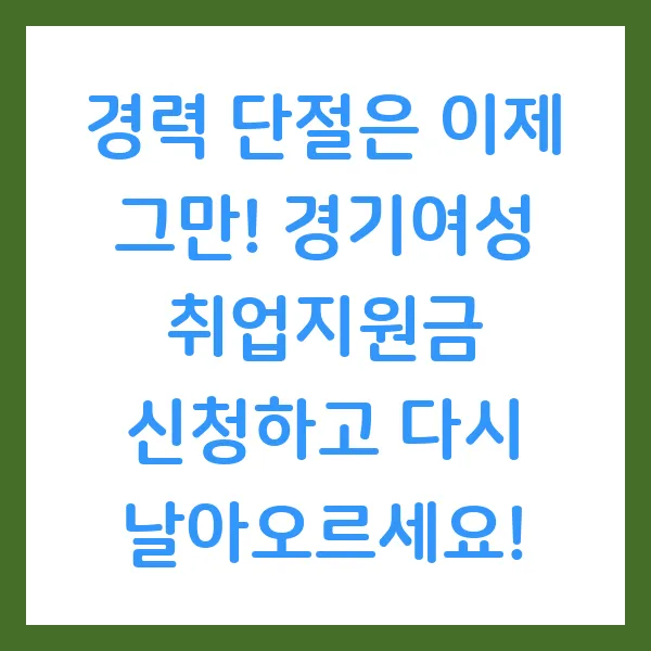경기여성 취업지원금 은 경기도 여성들의 성공적인 재취업을 위한 든든한 디딤돌입니다. 망설이지 말고 지금 바로 도전해보세요! 당신의 새로운 시작을 응원합니다.